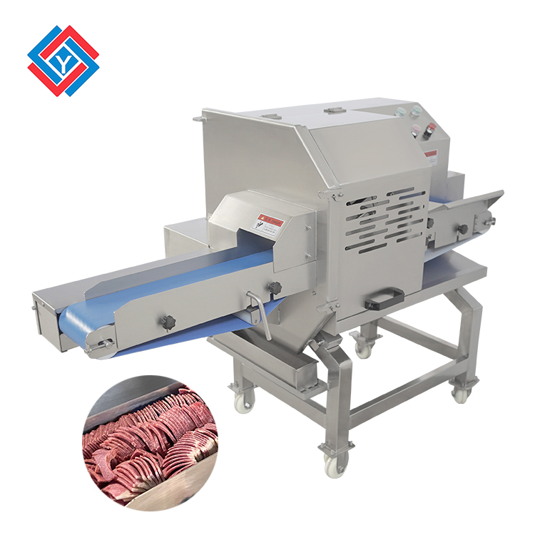 切熟肉片機能夠將不帶骨頭的肉類,例如扣肉、五花肉、牛扒、熟肉等肉類切成片狀或者塊狀,也可以用于蔬菜瓜果和各種豆制品的切絲、切片、切條工作,通過輸送帶可以整齊輸出,方便用戶進行擺盤或者包裝。